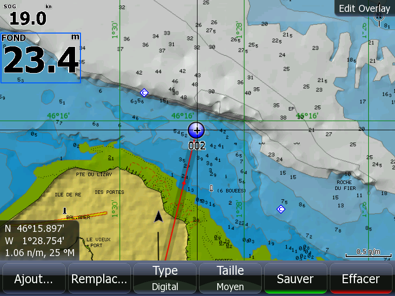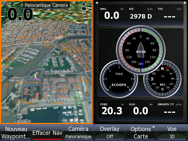 Cette amélioration n'est qu'une première ébauche, l'overlay (superposition) des vues aériennes ne peut se configurer pour ne l'avoir que sur terre par exemple, ou en régler la transparence (des fonctions qui existe chez Raymarine par exemple), mais le résultat est splendide !