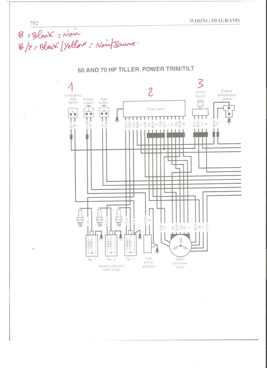 car pas certain que pour ton modele et année de moteurJohnson ce soit la bonne couleur.Puisque tu as probleme sur le faisceau de cable trouve le fil noir/jaune en sortie CDI débranche le du faisceau et si tu le fait toucher à un fil de masse moteur cela te fera la coupure moteur .