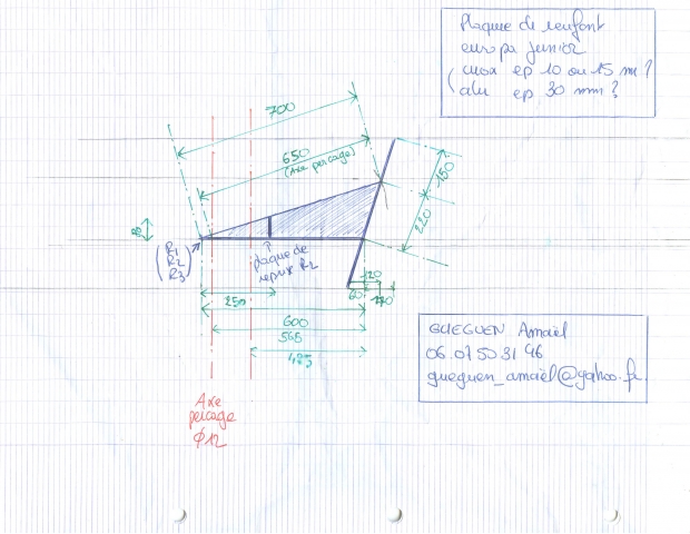 sur le matériau, l'allu serait le meilleur rapport poids/solidité?.... (2cm d'épaisseur avec renfort de triangulation?)